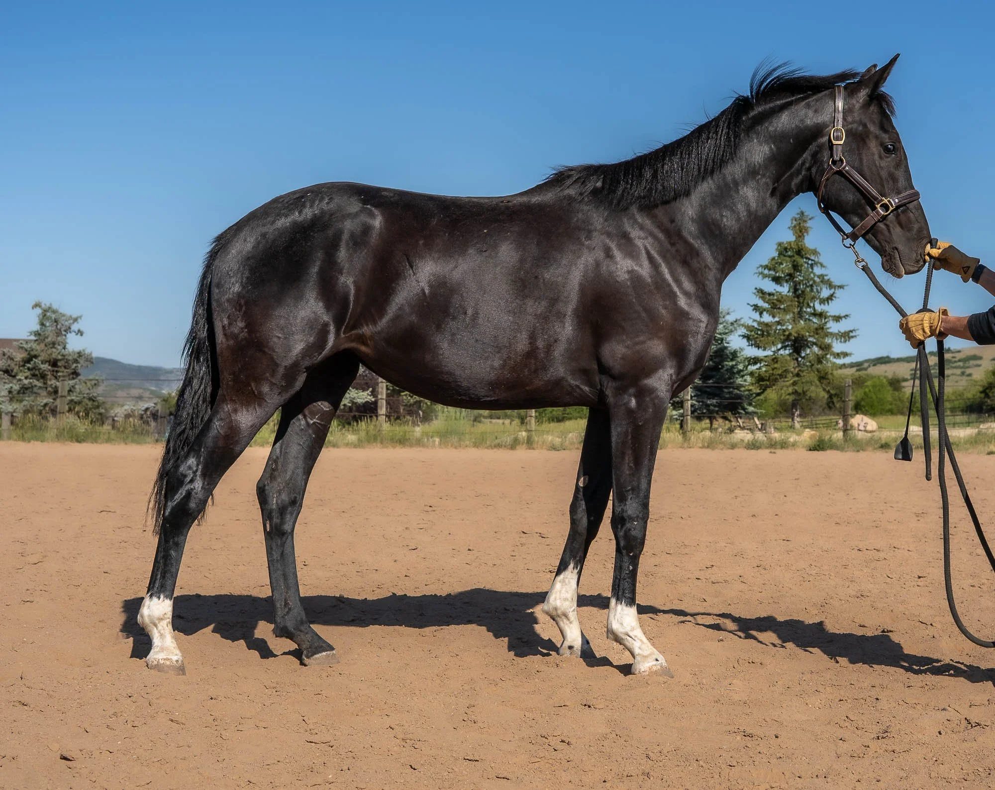 2 yo Tetris is everything we could want from our breeding program! 100% FEI potential in a gorgeous package. We kept her to develop her ourselves, but with the dawning realization we can’t keep them all, we are offering Tetris to an approved home for her development. Check out her video below to see why we think she’s so special.